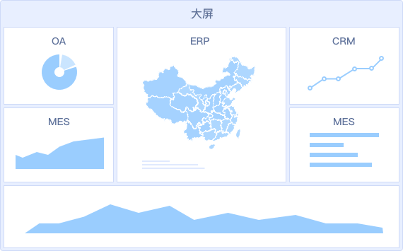 - 同一個大屏看板可以輕松整合ERP/OA/MES等多業(yè)務(wù)系統(tǒng)的數(shù)據(jù),打破信息孤島,進(jìn)行綜合展示分析,讓決策更清晰
